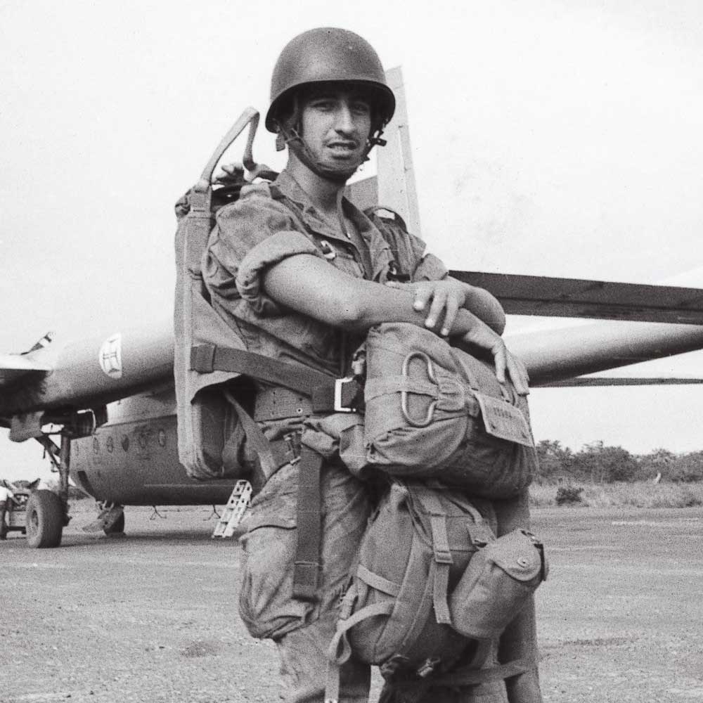 Aos dezoito anos alistou-se na Força Aérea, nas Tropas Pára-quedistas, ansiando pelos aviões que o levariam para a liberdade dos grandes espaços, para a descoberta de um mundo novo visto do alto.